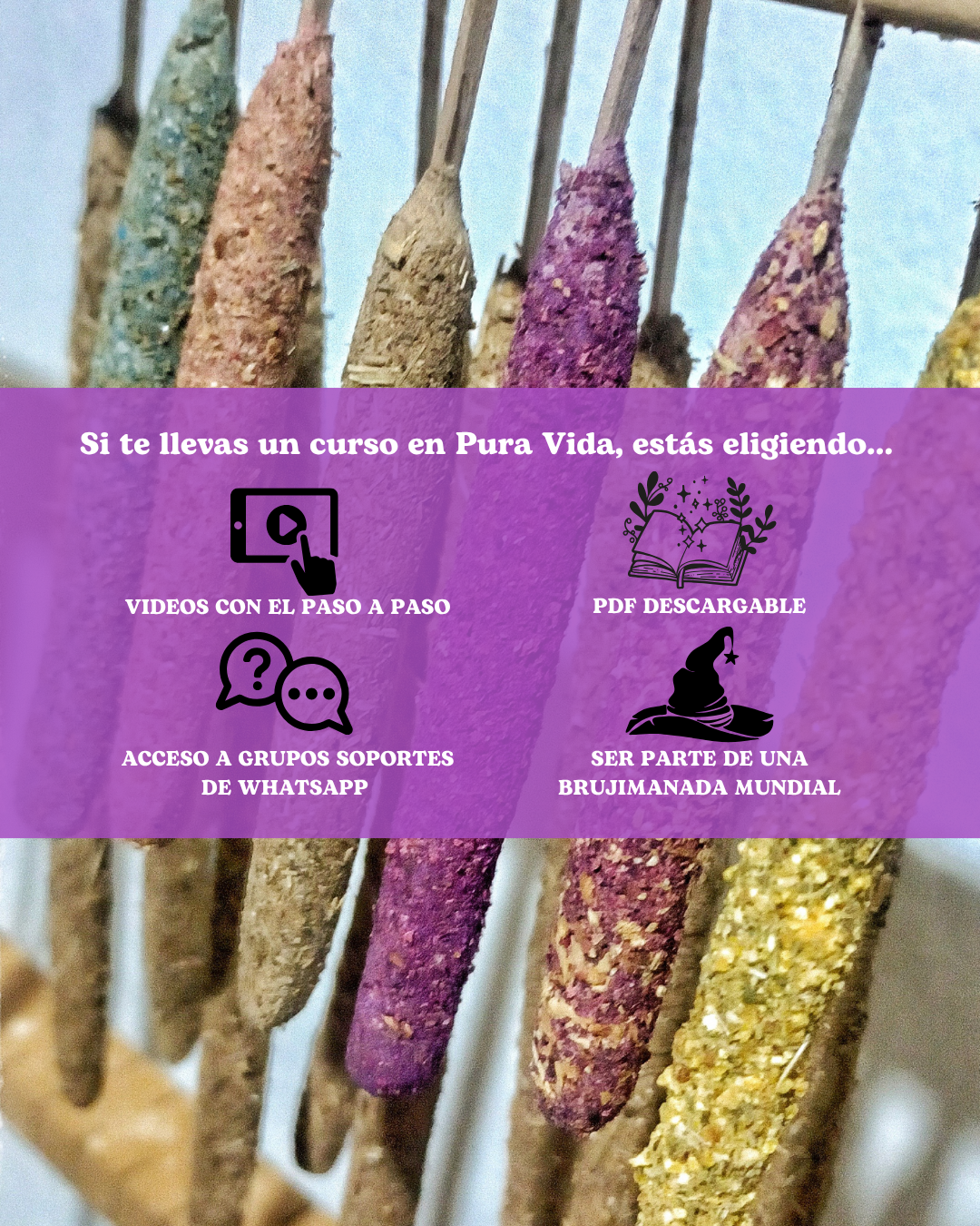 Si, vas a tener soporte directo conmigo, Daiana Roldán, cada vez que lo necesites. Dentro del pdf del curso, en la ultima pagina, vas a encontrar un link para unirte a un grupo soporte de Whatsapp lleno de brujis sahumadoras donde puedes dejar tus preguntas y también compartir fotos y videos para hacer tus consultas.